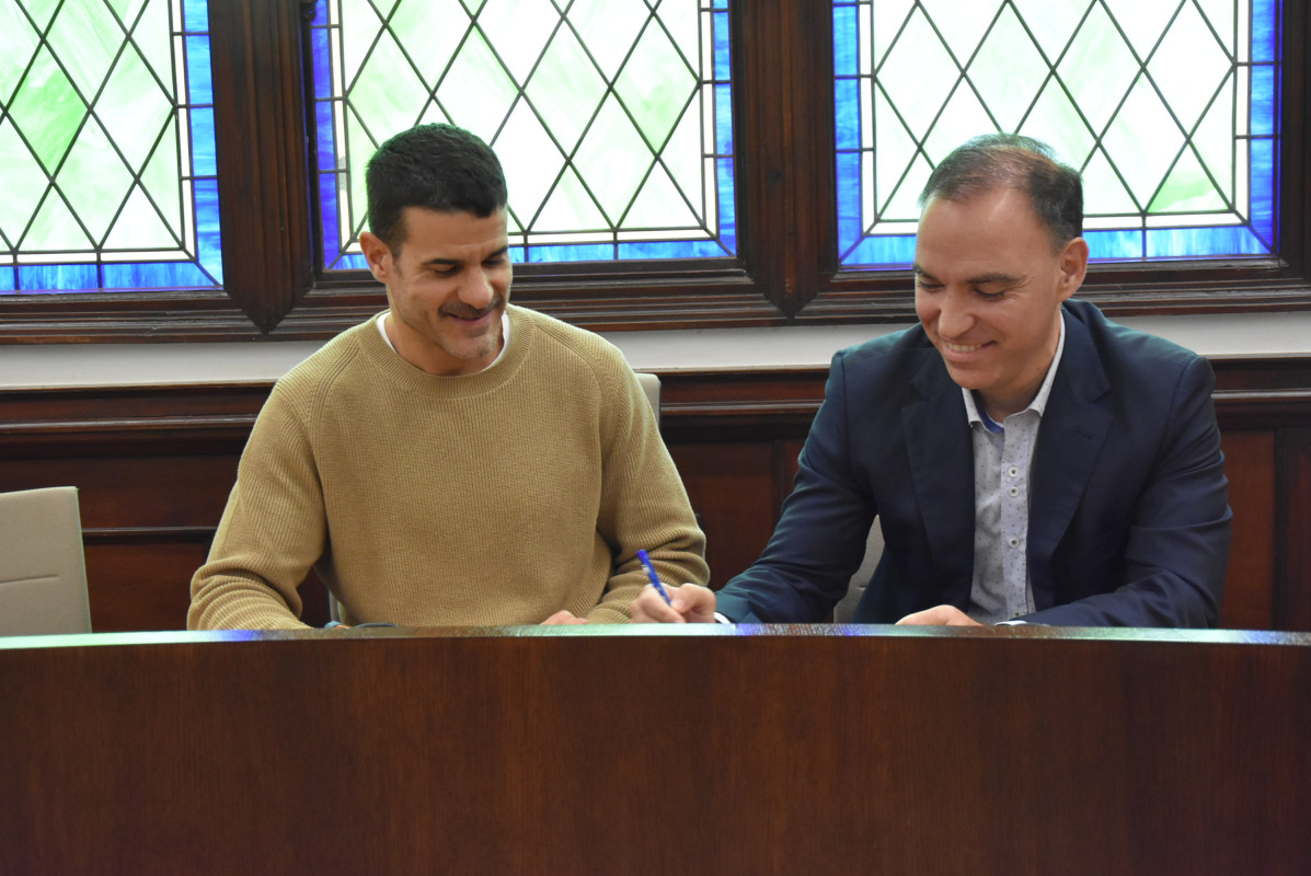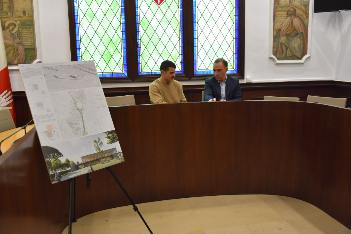 L’alcalde Oriol Lozano signa el contracte per iniciar les obres del nou complex esportiu municipal amb piscines