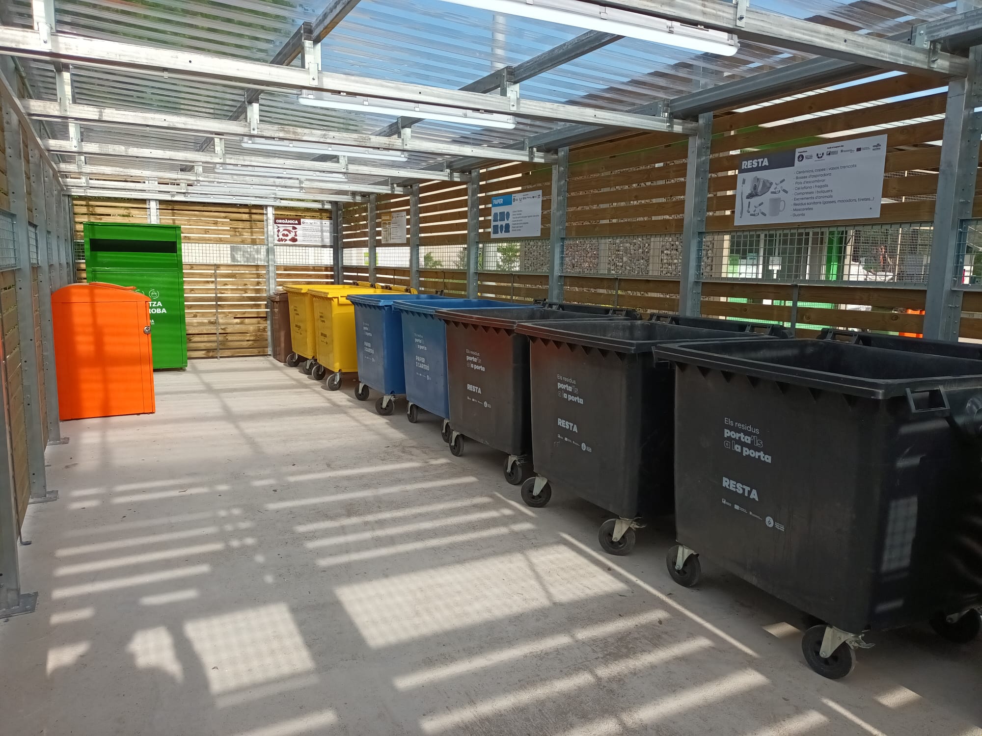 Dins l’àrea d’emergència hi ha contenidors per a l’orgànica, el vidre, paper, envasos i el rebuig, a més d’un contenidor per als residus tèxtils i per l’oli de cuina.